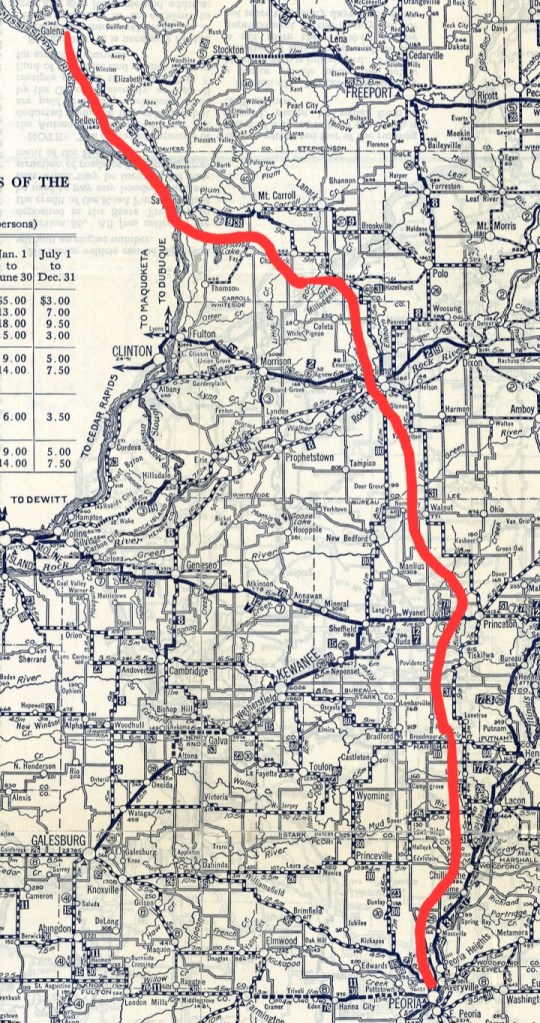 Before numbered state and federal highways came into existence in the mid-1920s, getting from town to town involved a drive, buggy ride or horse ride on dirt or gravel roads. During the World War I era, roads were improved and named to help motorists get their way around Illinois. The Indian Head Trail connected Galena and Peoria.