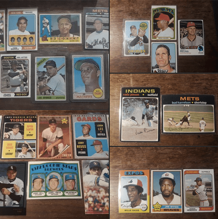 I only wound up hitting three more dealers, they had vintage stuff from $0.25 to $1. One table took care of several other Want List finds: 1972 Dick Allen, 1970 rookie and 1973 Jerry Reuss, 1960 Red Schoendienst (Braves), 1971 Gene Lamont RC (native of nearby Kirkland), and most of all – a 1965 Gary Kolb that completed my original Kolb Topps arc. Kolb is a native of Rock Falls, and I now have all of his original Topps cards. Still seeking his 1964 Venezuelan (my #1 Want List card), and his 1978 TCMY non-original card depicting him as a Met.