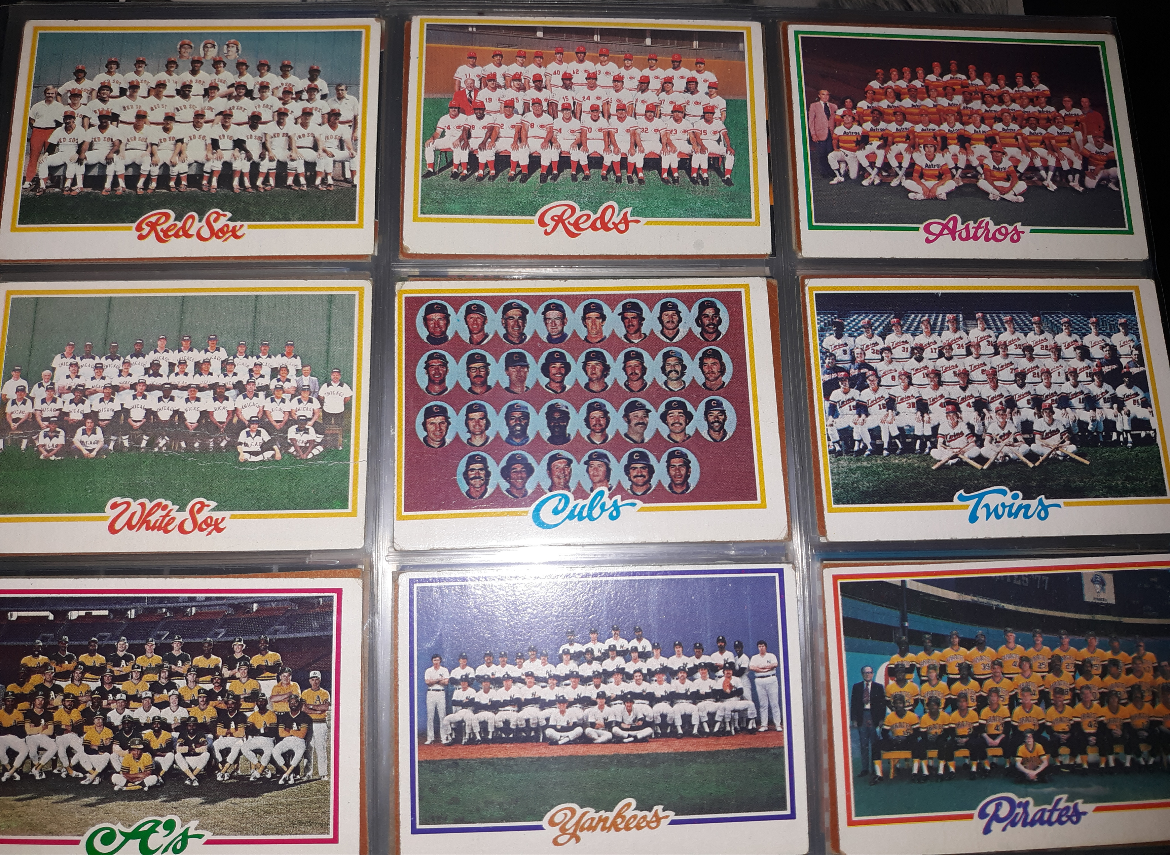 Topps published “team cards” between 1956-1981 before reviving the practice in the 21st century. Due to a player’s union dispute, team cards were not issued in 1969. Team cards were often sought out by collectors, and have a premium in value opposed to common cards.
