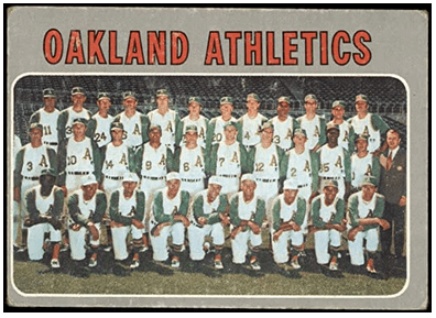 As a young man going backwards in the hobby focus, team cards were cool simply because of the pricing. However, as I have gone back into looking deeper into late vintage-era cards, my curiosity began to pique when I heard that there was something very unique about the 1970 Topps card of the Oakland Athletics.