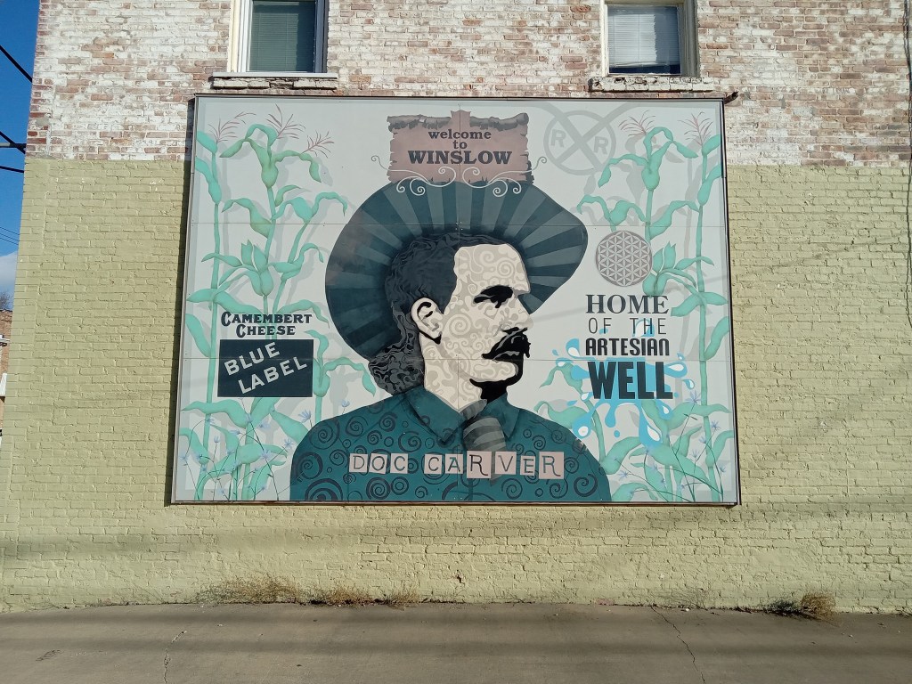 The town’s most famous native was popular 19th century entertaining sharpshooter Doc Carver; a mural of him is painted outside one of the town’s buildings. It’s at that spot where you can experience one of my favorite jokes: standing on a corner in Winslow. (You’ll know what I mean when you listen to “Take it Easy” by Eagles.)