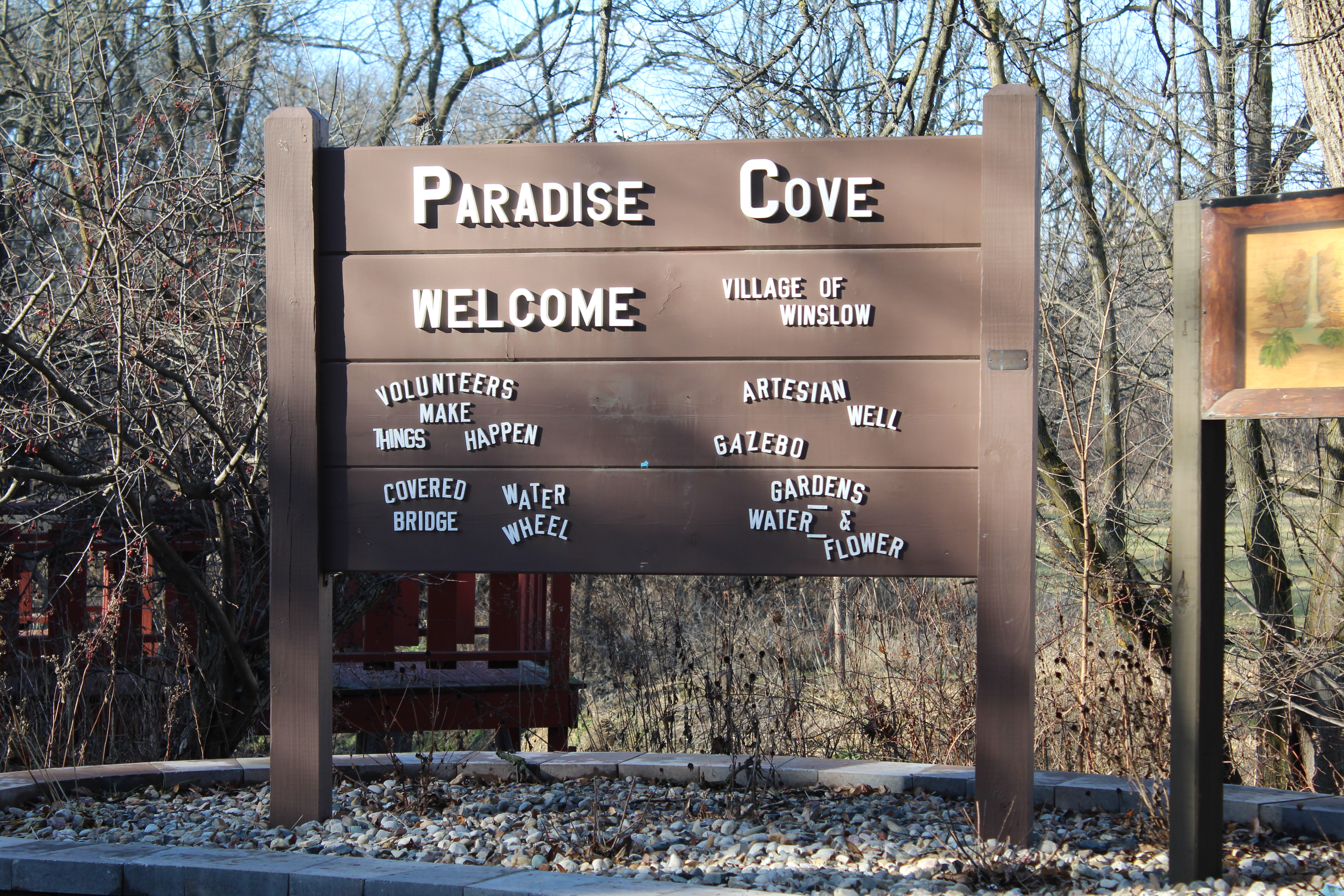 The park and its well are well-hidden from the beaten path: There is a “Paradise Cove” sign next to the Grace Bible Church that leads visitors down a driveway-like path to the park. The Paradise Cove Committee makes sure everything is looking neat and in working order.