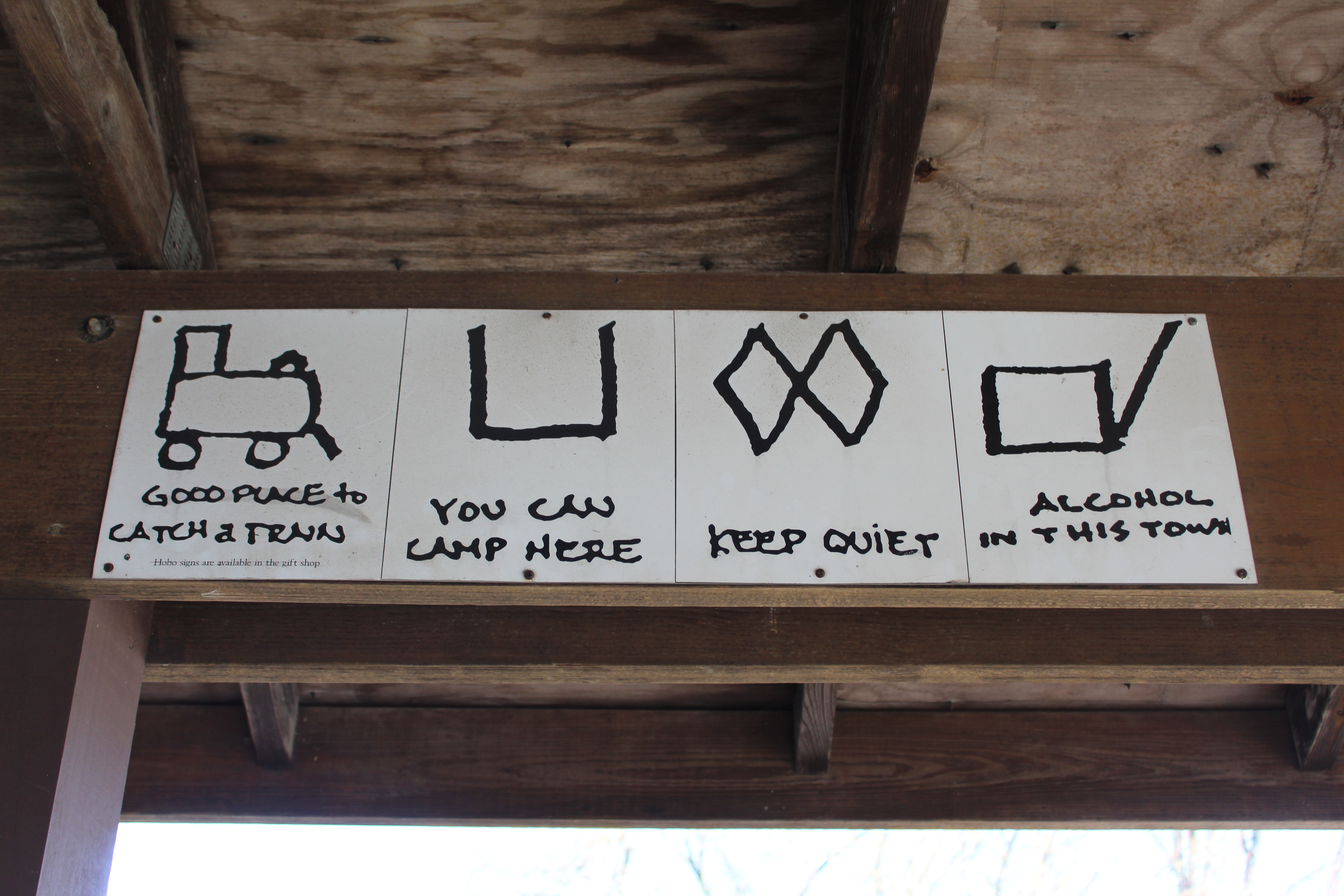 The large picnic shelter contains displays of hobo symbols, used by them to identify such things as safe camping and where to get some alcohol. Union Pacific’s radio communications also are heard within the shelter. A webcam on top of the shelter shows 24-7 activity looking toward the diamond junction, and is available HERE.