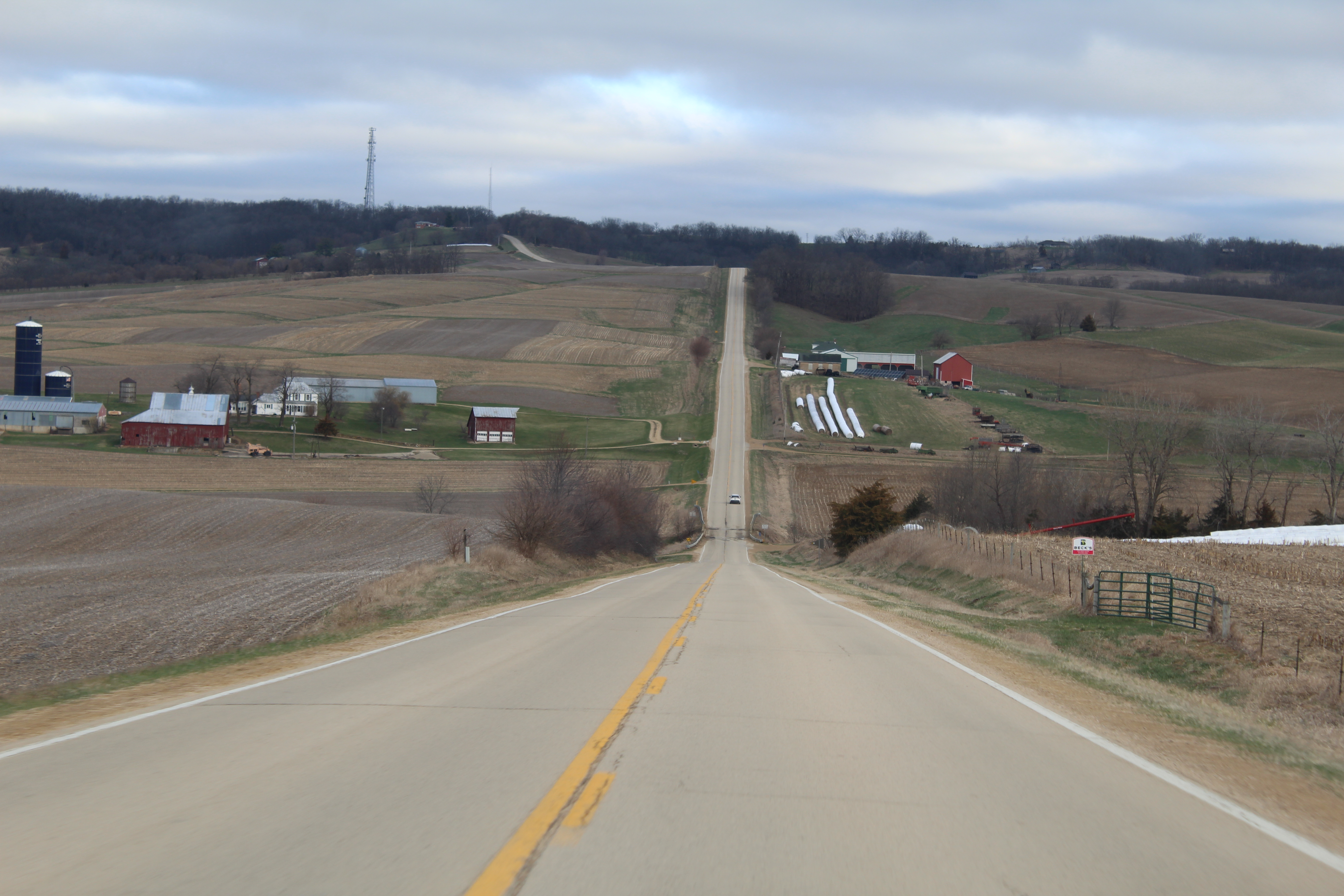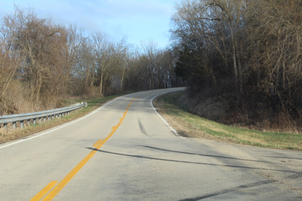 The winding route is a quick way to get from Mount Carroll to Galena and other points north, as well as Scales Mound and Shullsburg, Wisconsin. It’s all striped, and there are no gravel roads involved. If you enjoy views of hills and ridges that can be seen over a scope of a couple of miles, parts of this route have what you want.