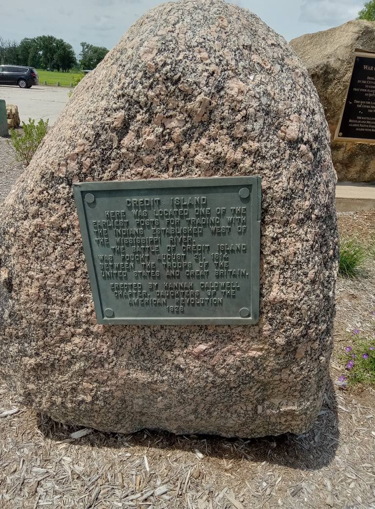 Very short trails lead from the grass to the river’s edge, where visitors also can go fishing. Picnic tables are across the road. Much like the next site of the Quad Cities’ involvement in the War of 1812, the place is an attraction along the Great River Road along the Mississippi River, visited by travelers throughout the world who commute by motor or bicycle. When I visited in late June 2025, there was a small contingent of bicyclists who marveled at the statue and took pictures.