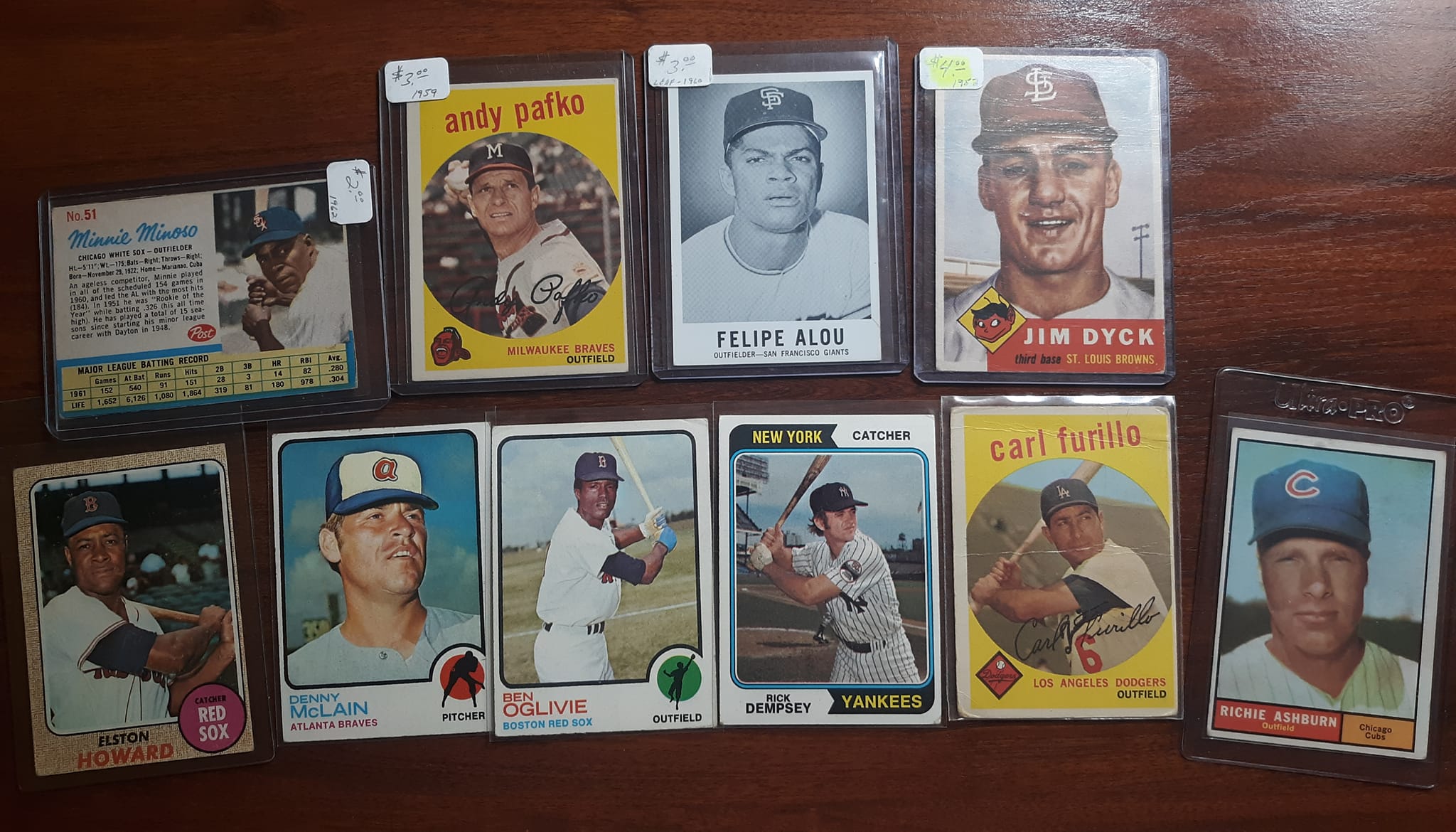 The monthly shows at the Orland Park Civic Center in the southwest suburbs of Chicago has become a favorite of mine due to the large number of vintage cards I’ve come across. Many cards I’ve found filled my Want List, or were cards that I thought were good enough to grace my collection, such as minor star rookie cards and “conversation piece” cards such as Frank Thomas in a Cubs uniform (actually, that’s the “old” Frank Thomas of the 50s and 60s, an original Met who was a pretty good hitter in his era).